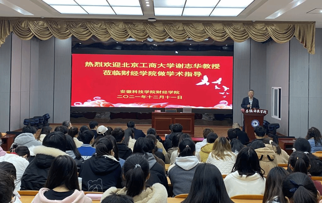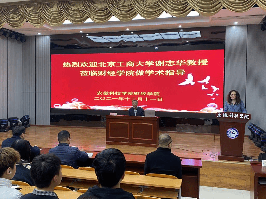 2021年12月11日上午,北京工商大学原副校长、现任教育部工商管理学科指导委员会副主任委员谢志华教授应邀莅临我校财经学院指导新商科专业建设,安徽财经大学会计学院院长翟胜宝教授随行指导。谢志华在敏行楼A一楼报告厅做了题为“新技术与新商科”的学术讲座,新半岛官方网站_半岛(中国)党委委员、副校长黄友锐、教务处处长赵伟峰、财经学院党政领导和全体教职工以及2021级会计学、2021级金融工程专业学生参加报告会。财经学院院长郝世绵主持报告会。