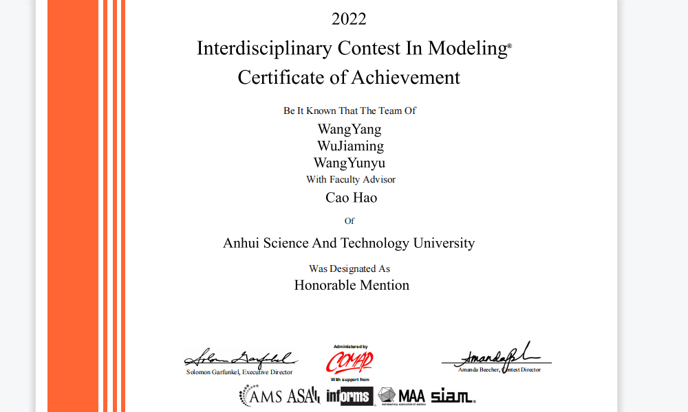 学生参加美国大学生数学建模比赛荣获国际二等奖