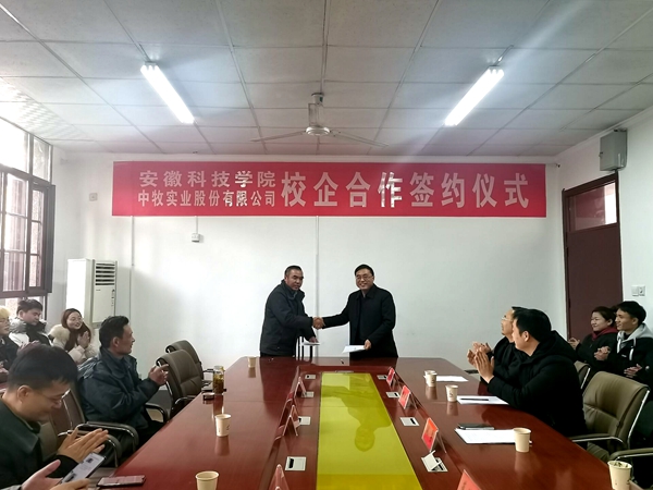 12月11日下午,我校动物科学学院与中牧实业股份有限公司武汉华罗分公司校企合作签约仪式在学院会议室顺隆重举行。中牧股份预混料事业部总经理助理张磊、中牧股份武汉华罗分公司总经理吕博文、中牧股份预混料业务部总经理胡四化、武汉华罗分公司安徽区域经理于洪波,动物科学学院党委书记姚勇、党委纪检委员蔡治华、院长助理贺绍君,校招生就业处秘书陆双双,毕业班班主任出席仪式。部分班级学生代表参加仪式。仪式由学院党委秘书胡文靖主持。