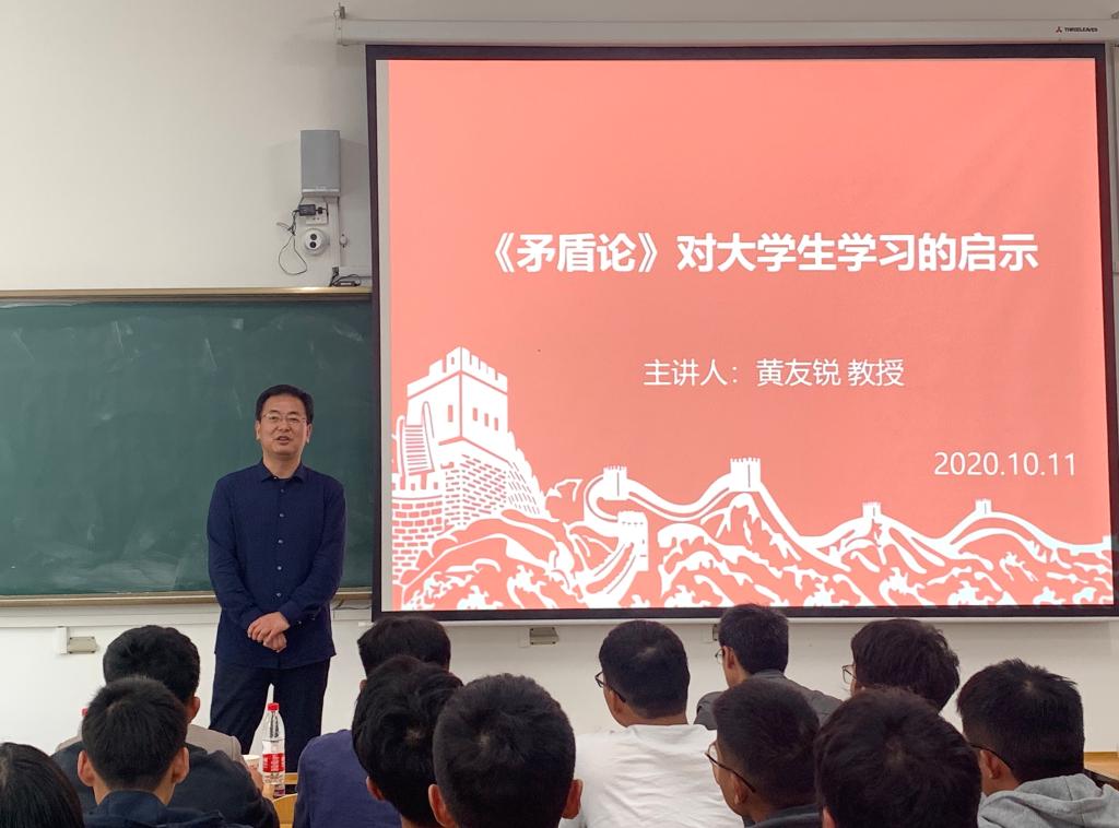 10月11日下午,新半岛官方网站_半岛(中国)致知楼B108教室内,气氛热烈,座无虚席。校党委委员、副校长黄友锐走上讲台,给2020级电气工程及其自动化专业学生上了一次思政课。