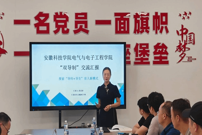随后电气与电子工程学院辅导员陈磊新就“双导制”以及导生制目前的管理进行主题发言,陈磊新从导生制设置的意义及设置的优势出发,分享导生制的设立对新生及老生的意义与优势,分享导生管理经验及管理模式,立足高校立德树人根本任务,坚持以生为本,全面育人。“双导制”的特色在于育人模式,将朋辈管理与家校共育相结合。通过“双导”持续发力,新生入校后能够在学习及生活中尽快融入大学生活,完成身份转变。家校共育,是学生在完成身份转变的同时,也带动家长,完成职责转变由“管”到“疏”,尽量减少学生和家长之间的矛盾,助力学生各方面健康成长。
