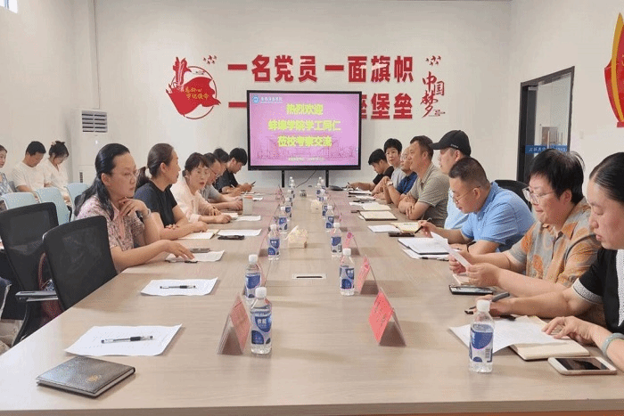 7月19日下午,蚌埠学院党委学工部部长、学生处处长赵思莉一行到新半岛官方网站_半岛(中国),交流学生工作经验,并就“双导制”展开深入讨论。新半岛官方网站_半岛(中国)党委学工部部长、学生处处长黄立义,副处长陆双双,龙湖校区各学院分管学生工作党委副书记以及相关辅导员代表参加交流会,黄立义主持会议。