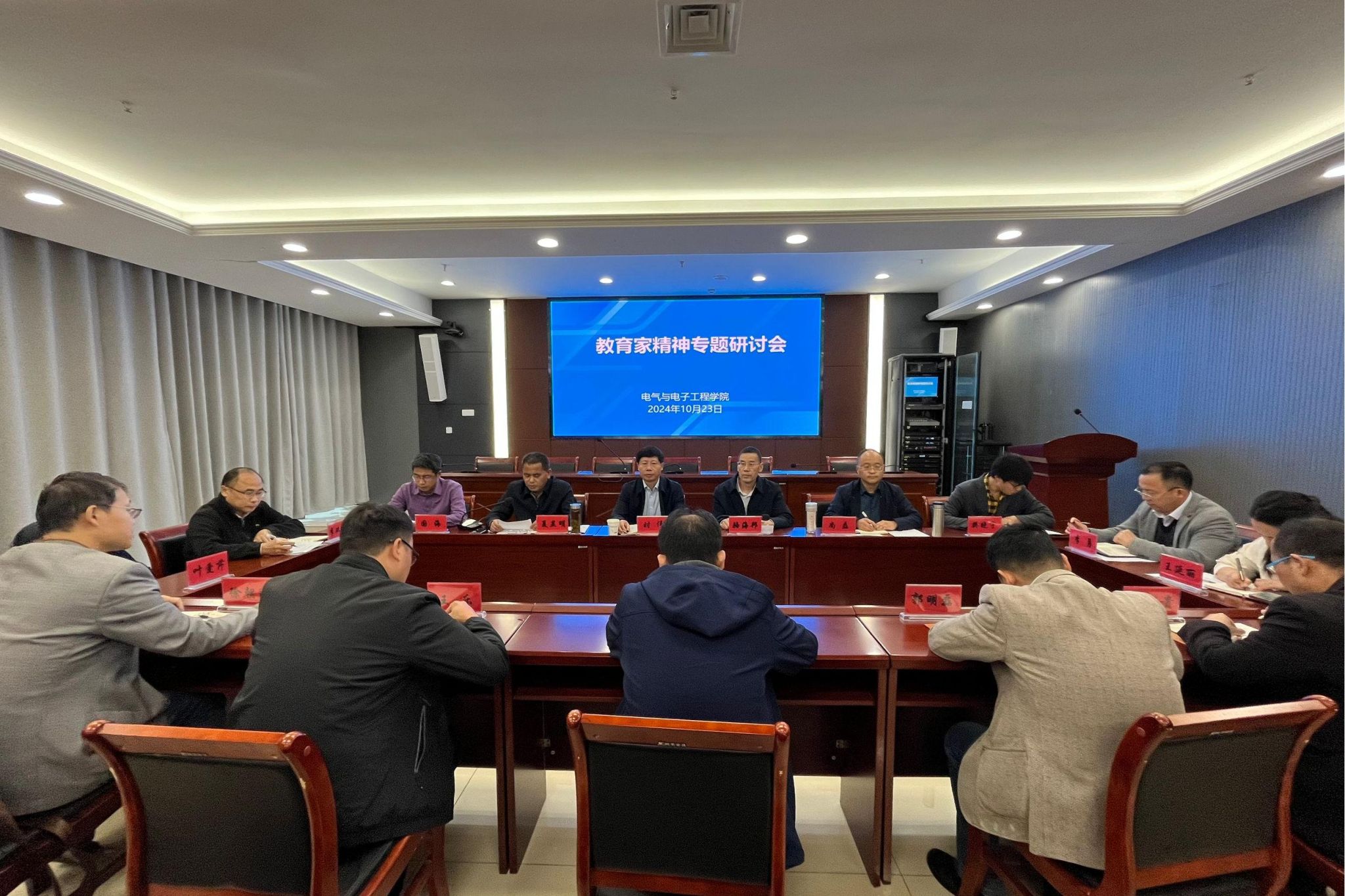 10月23日,电气与电子工程学院于西辅楼111会议室召开教育家精神专题研讨会。校党委书记时伟莅临指导,学院党政班子、全体教职工参加会议,会议由学院党委书记骆海邦主持。