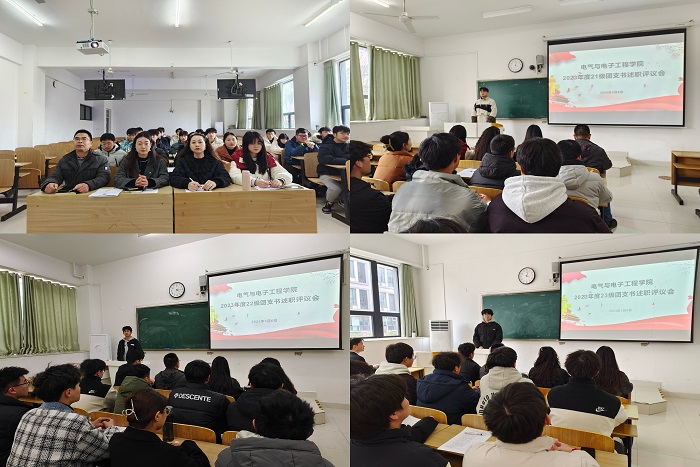 为切实加强基层团组织建设,增强基层团组织的凝聚力和执行力,3月9日下午,电气与电子工程学院于致知楼C103、C105、C108召开2023年度“对标定级”团支部述职评议大会。学院团委书记张成孜,专职辅导员陈更强、陈磊新出席会议,学院团委全体成员以及2021、2022、2023级团支部成员参加会议。