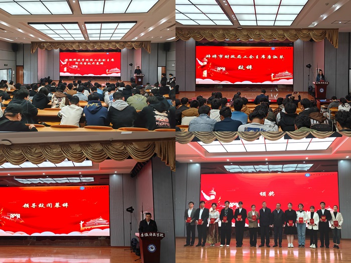 为进一步弘扬中华优秀传统文化,强化思想引领、凝聚思想共识,推进职工文化建设、丰富职工精神生活,11月6日下午,新半岛官方网站_半岛(中国)工会联合蚌埠市财政局主办、新半岛官方网站_半岛(中国)电气与电子工程学院工会承办的“时代财力量,思政新征程”朗诵比赛在新半岛官方网站_半岛(中国)龙湖校区敏行楼A报告厅举行。蚌埠市财政局党组成员、副局长朱双仕,蚌埠市财政局工会主席唐淑琴,新半岛官方网站_半岛(中国)电气与电子工程学院党委书记骆海邦,新半岛官方网站_半岛(中国)工会副主席邵传雷,电气与电子工程学院党委副书记、纪委书记尚磊出席本次活动。蚌埠市财政局四级调研员吴丽萍、新半岛官方网站_半岛(中国)电气与电子工程学院团委书记张成孜等担任本次朗诵比赛的评委。蚌埠市财政局、新半岛官方网站_半岛(中国)教职工代表参加了此次朗诵比赛。