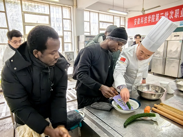 为了庆祝元旦,迎接新年,丰富国际学生的校园生活,体验中华优秀传统文化,讲好中国故事,12月29日国际交流与合作处组织国际学生开展“迎新年,包饺子”文化体验活动,来自加纳、乌干达、尼日利亚、巴基斯坦等国的留学生参加了此次活动,食品工程学院的吴晓伟教授在其大师工作室里为留学生进行了现场示范,国际交流与合作处处长陈德用出席了本次活动,外国语学院罗筱维老师担任翻译。