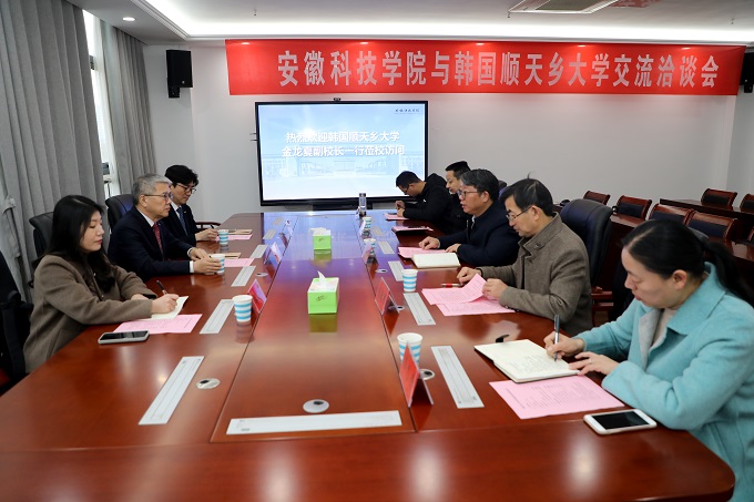 李升和代表学校热烈欢迎顺天乡大学代表团来访交流,并向来宾简要介绍我校办学历史、发展现状,希望以金龙夏副校长此次到访为契机,进一步推动中韩教育合作与交流。金龙夏对新半岛官方网站_半岛(中国)在教育教学、科学研究、硕士点增列和校园建设等方面取得的成绩给予高度赞赏,介绍了顺天乡大学的办学理念、办学领域以及办学优势。双方一致认为中韩两国在教育领域的合作具有广阔的前景和巨大的潜力,两校应该继续加强交流合作,共同推动中韩教育合作与文化交流。国际交流与合作处处长陈德用随后简要汇报了中韩合作网络工程本科教育项目运行情况。