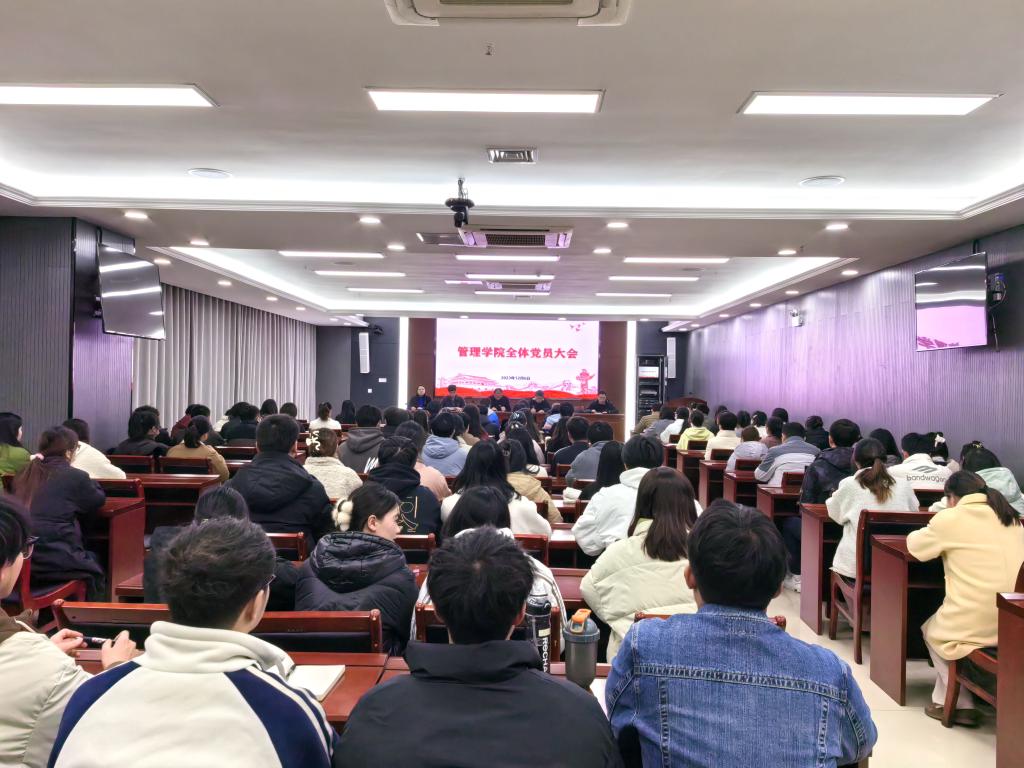 为进一步落实学校党建工作目标任务,12月6日下午,管理学院党委于西附楼111会议室组织召开全体党员大会,部署近期党建工作。学院党委书记丁景良、院长陈传万、党委副书记陶漫、副院长郑谦和张国宝出席了会议,会议由陶漫主持。