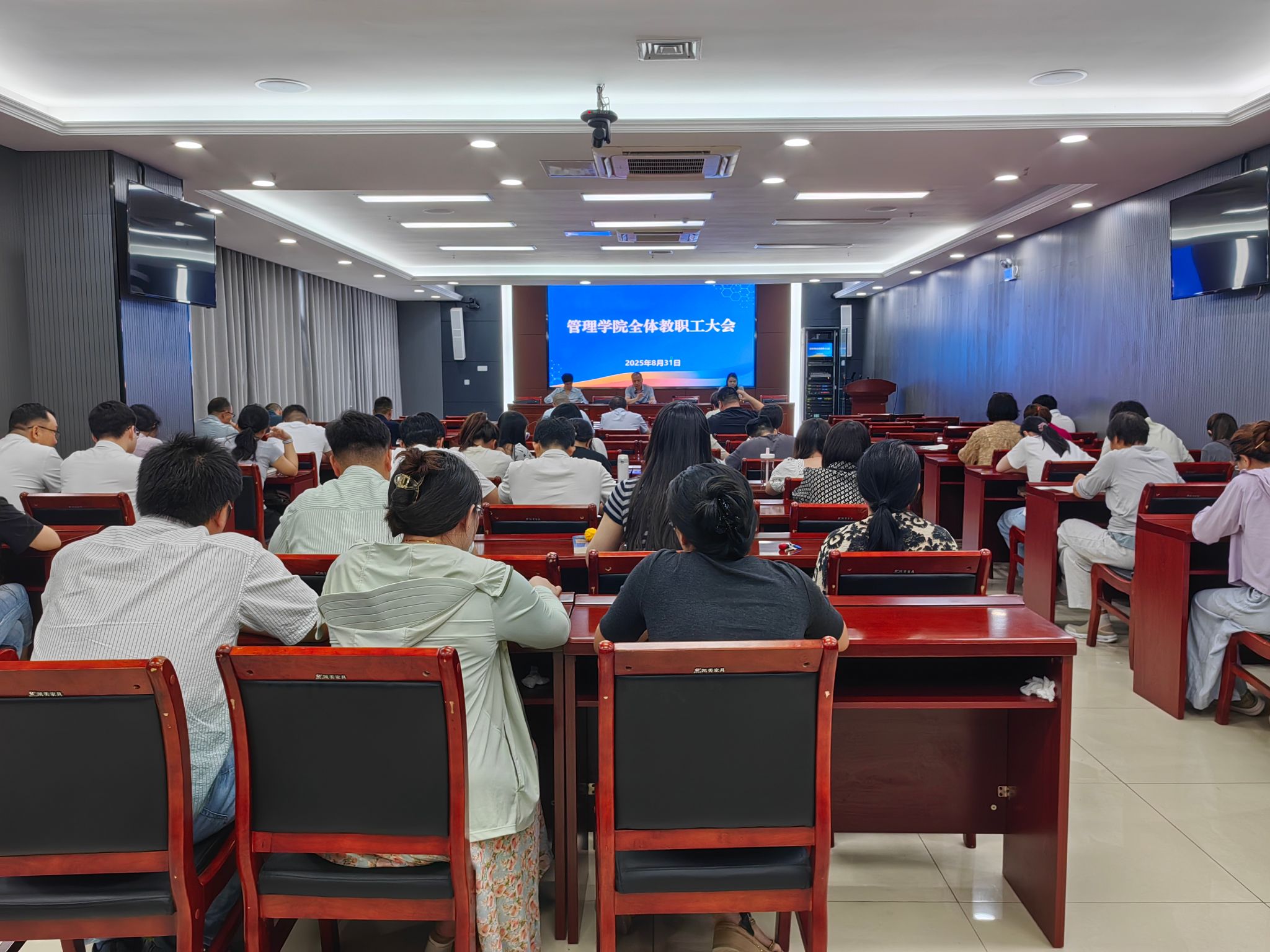 831日下午,管理学院在西附楼111会议室召开全体教职工大会,回顾暑期工作,部署安排新学期重点工作。学院党政领导及全体教职工参加会议,会议由学院党委书记丁景良主持。