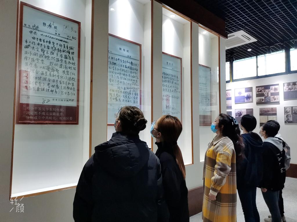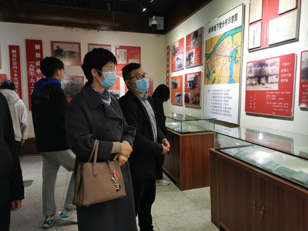 在革命历史陈列馆,大家在一幅幅图片,一份份史料,一件件实物前驻足,认真观看学习,重温党的辉煌历程。“桃花红雨英雄血,碧海丹霞志士心”,在了解到许多革命烈士为实现民族独立和人民解放而献出了宝贵的生命之后,每一名师生党员都肃然起敬。