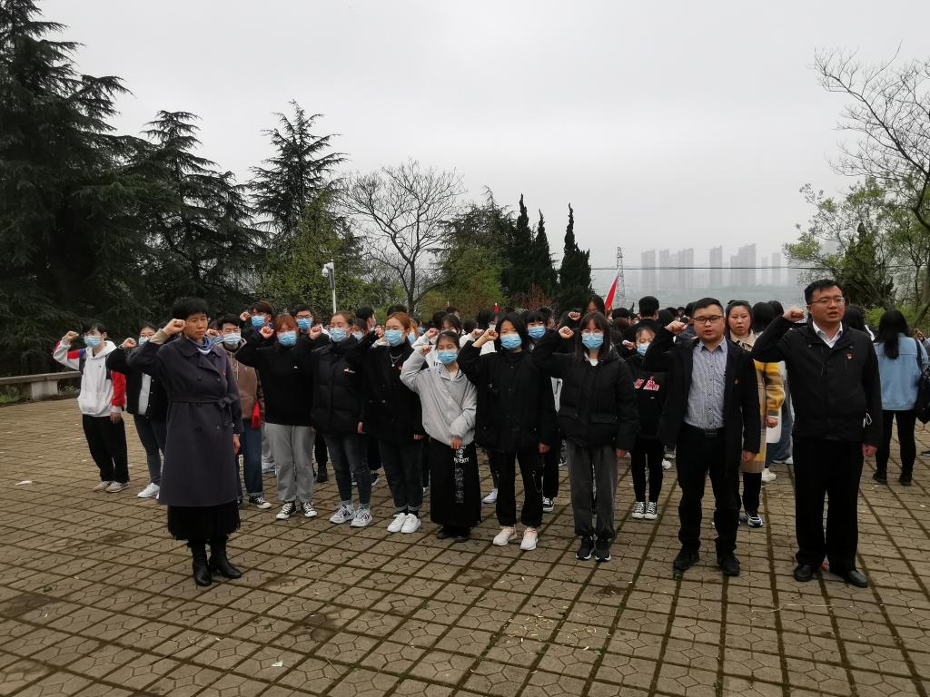 在革命烈士纪念碑前,全体师生列队,集体三鞠躬并默哀,表达对革命先烈们的无限缅怀和敬意之情。陶漫带领师生党员们重温入党誓词并强调要深刻认识到学好党史的重要意义,不忘初心、牢记使命,继续继承、发扬党的光荣传统和革命精神,勇于作为,充分发挥好党员的模范带头作用,积极为实现中华民族伟大复兴的中国梦而努力奋斗。志愿者们也一一走向前向烈士们献上鲜花。