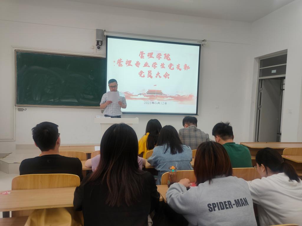 5月12日下午,管理学生党支部在致知楼C203教室召开党员大会,开展省委巡视整改工作专项检查反馈问题整改专题组织生活会,并对校级先进基层党组织、优秀共产党员、优秀党务工作者推选工作作了推进。