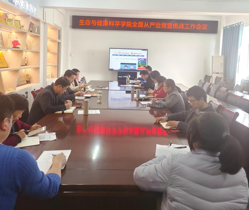 3月30日下午,生命与健康科学学院在学院会议室召开全面从严治党暨统战工作会议,学院党政领导、党委委员、党支部书记、纪委委员及党外知识分子参加会议,会议由学院党委书记詹学文主持。