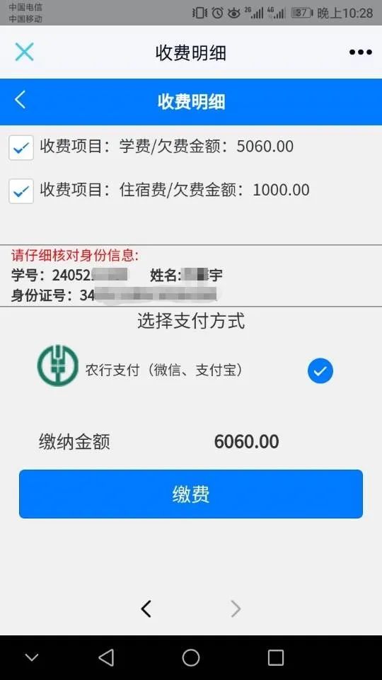 5.点击缴费,跳转到微信支付页面(目前仅支持微信支付