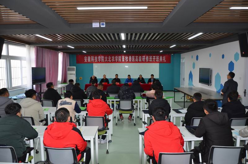受大北农集团安徽区分公司委托,我校举办了大北农学院畜牧兽医高级研修班。1月16日上午八点半,在我校求知楼B309教室举行了该班的开班典礼,我校动物科学学院院长刘德义,继续教育学院院长杨维来、副院长张文国,大北农集团安徽分公司总经理王振凯、总经理助理白善田、储修文及该班的全体学员等人出席了典礼,典礼由张文国主持。