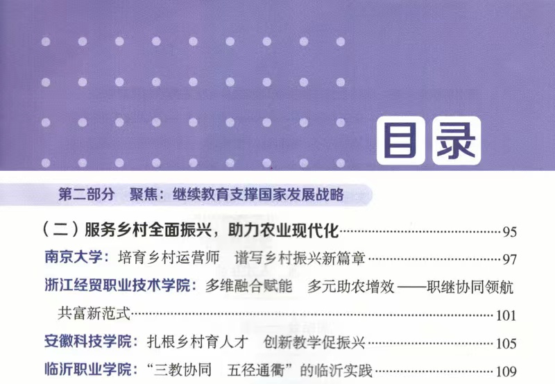 近日,在2025年全民终身学习活动周全国总开幕式上,我校申报的“扎根乡村育人才 创新教学促振兴”继续教育改革案例成功入选教育部职业教育与成人教育司、教育部职业教育发展中心联合编辑的《高校继续教育改革创新之路——学习型社会建设重点任务典型案例汇编(第二辑)》。
