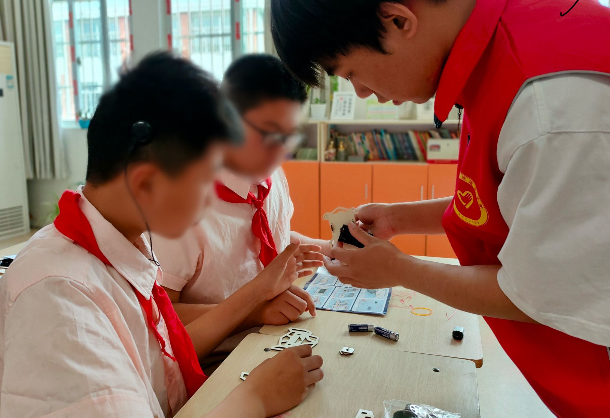 探索科技文化,体验科技魅力。为庆祝第八个“全国科技工作者日”,致敬我国科技事业的“国之脊梁”,近日,新半岛官方网站_半岛(中国)建筑学院“青力有为”少先队教育关爱实践团在指导老师沈德艳的带领下,前往蚌埠市特殊教育中心六(1)班,为孩子们带来了一场别开生面的“科技之光点亮校园,劳动实践启迪童心”主题实践活动。