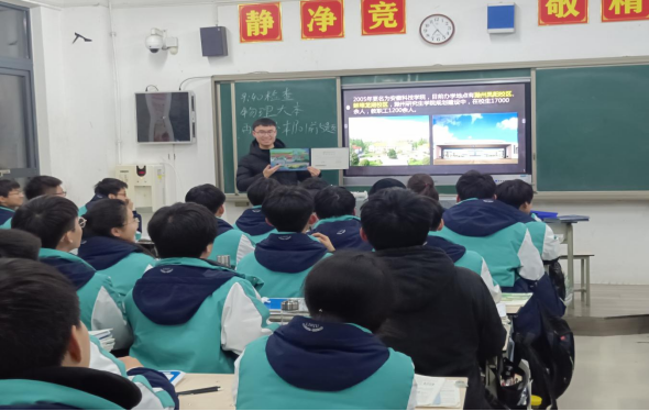 实践小组成员首先拜访了高中班主任,汇报了学习情况,分享了自身大学规划和未来职业路径选择,看望了任课老师们,并向他们的辛勤培养表示感谢。接着介绍了我校整体概况,列举了学校的校园文化、师资水平、考研就业等情况,并诚邀老师们到新半岛官方网站_半岛(中国)参观交流,切实感受安科校园氛围。随后实践小组成员深入到班级利用视频及PPT介绍新半岛官方网站_半岛(中国)以及高校招生政策解读,耐心回答学弟学妹们所关心的热点问题,分享了自己的学习方法和经验总结,并预祝学弟学妹们在高考中稳定发挥,取得优异成绩,同时也表达了在安科等待学弟学妹们的美好期盼。