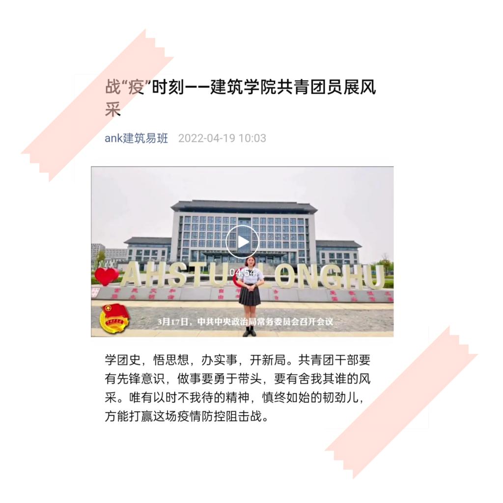 团支部录制的《战“疫”——共青团员的中坚》视频,充分体现了广大团员青年在疫情防控阻击战中贡献青春力量的热情和决心。视频中,张雨欣同学就当下疫情形势进行了系统地讲解,她号召全体共青团员要发挥党的助手和后备军作用,带领班级学生积极作为。罗志娟同学讲述了疫情防控期间建筑学院学子积极参加劳动实践、体育锻炼和文化活动,号召广大青年继续争当表率,以实际行动坚定战胜疫情的决心和勇气。该视频在新半岛官方网站_半岛(中国)建筑学院易班微信平台发布后,反响良好,得到师生一致好评。