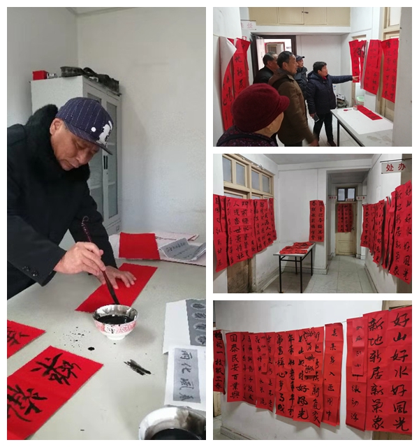 过大年,贴春联,一直是中华民族欢度春节的重要习俗之一。老同志听说开展了现场免费写春联的活动,早早地就来到了离退休处,书法家们刚到,就开始忙乎了起来。在活动现场,书法家们挥毫泼墨,热情地为老同志和学校职工书写一副副满载着新春祝福的春联和福字,也送上了一句句祝福。离退休工作处的工作人员更是忙得不亦乐乎,帮着裁春联纸、晒春联、派发春联,整个活动现场充满着新春来临之际喜气洋洋的景象。