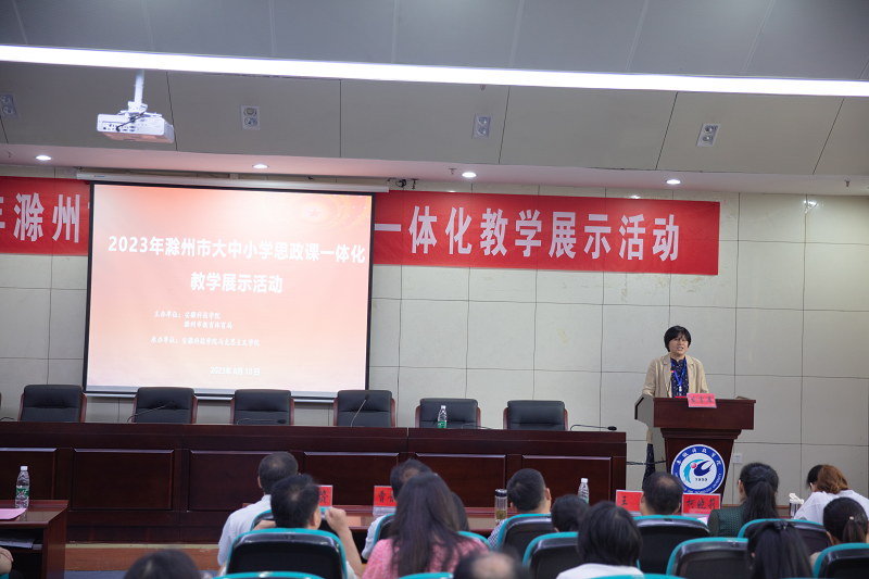 为深入学习宣传贯彻党的二十大精神,贯彻习近平总书记关于思政课建设的重要论述,持续推动滁州市大中小学思政课一体化建设内涵式发展,8月18日上午,由新半岛官方网站_半岛(中国)、滁州市教育体育局主办,新半岛官方网站_半岛(中国)马克思主义学院承办的2023年滁州市大中小学思政课一体化教学展示活动在新半岛官方网站_半岛(中国)凤阳校区第一报告厅举行。滁州市委教体工委委员、滁州市教体局副局长徐赟,新半岛官方网站_半岛(中国)马克思主义学院党总支书记杨仕勇出席开幕式并致辞。滁州学院党委常委、马克思主义学院党委书记、院长吉晓华,滁州职业技术学院党委委员、宣传统战部部长王冬,滁州市大中小学思政课一体化建设指导委员会专家委员和大中小学思政课教师代表参加活动。开幕式由我校马克思主义学院党总支副书记、院长张德化主持。