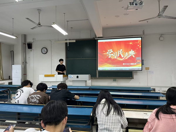 为深入学习贯彻习近平总书记关于加强《中华人民共和国民法典》学习宣传的重要指示精神,让民法典走进学校,走到师生身边,走进师生心里,营造学法、知法、守法的良好校园氛围,5月23日种子222班开展了以“美好生活-民法典相伴”为主题的《中华人民共和国民法典》宣传活动。本次活动由团支书凌远主持。