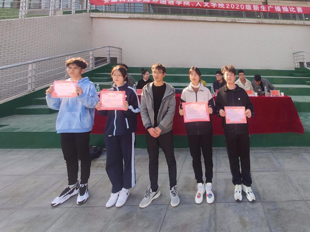 为提升大学生身体健康素质,提高学生集体荣誉意识,加强班风学风建设,11月14日下午,人文学院联合外国语学院于西区操场举办了2020级新生广播体操比赛。本次比赛特邀外国语学院党总支书记蔡为青、人文学院20级辅导员王其担任嘉宾,资源与环境科学学院学生会主席陈汉、食品工程学院学生会主席崔帅、动物科学学院学生会主席许庆威、外国语学院学生会主席王雨桐、人文学院学生会主席杨祉龙担任评委。