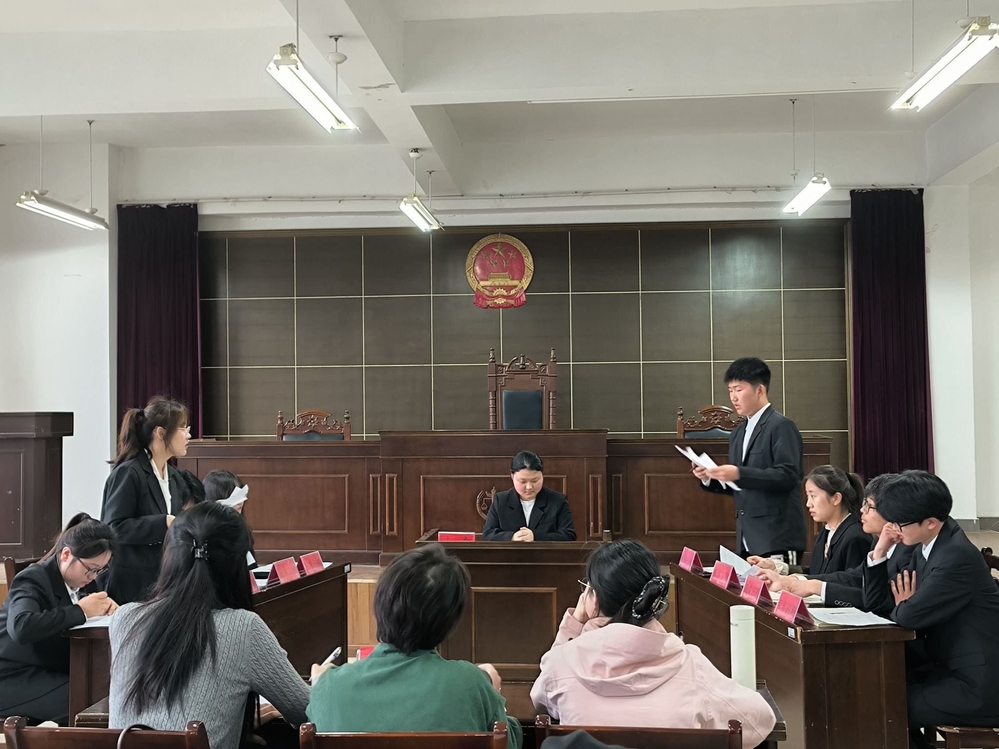 为推进校园法治文化建设,促进法学专业学生理论学习与实践锻炼相结合,提高专业素养和法律实务能力,4月14日下午,由人文学院法学社承办的新半岛官方网站_半岛(中国)2024年“未来律师辩论赛”决赛在模拟法庭举行。本次辩论赛由法学系主任张晓云担任教师评委,史梦洁、李旭、方巧慧担任学生评委;共有4组参赛队伍参与决赛角逐。