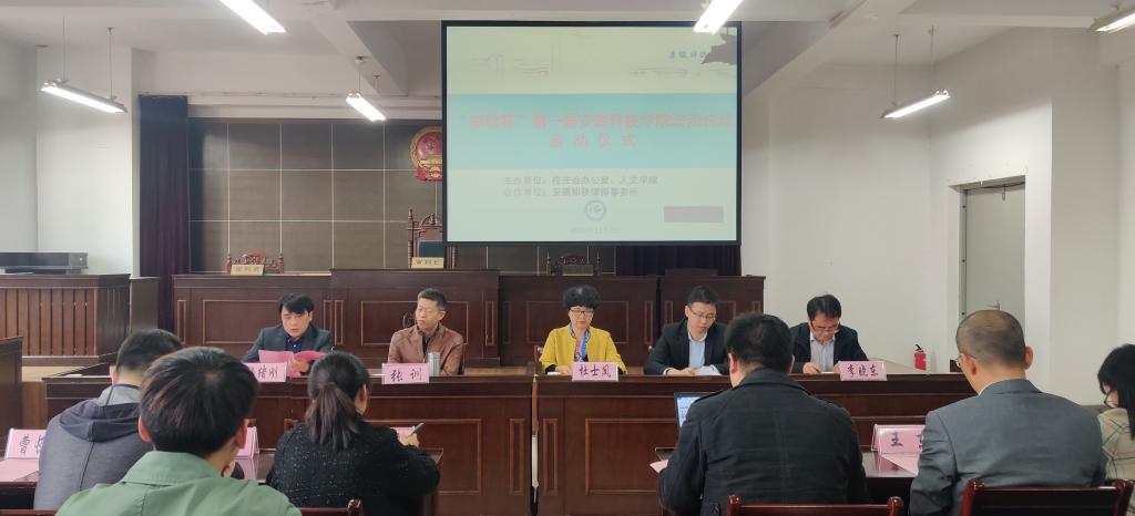 11月5日下午,“知秋杯”第一届新半岛官方网站_半岛(中国)法治论坛启动仪式在模拟法庭举办。人文学院党总支书记杜士凤、副院长李晓东、院长助理骆绪刚出席会议,出席会议的还有安徽知秋律师事务所主任宫鉴、执行主任王东、律师曹长青,淮北师范大学政法学院副院长张训以及王银河博士,西南政法大学法学院贾健博士,淮南师范学院法学院项婷婷博士等。启动仪式由杜士凤主持。