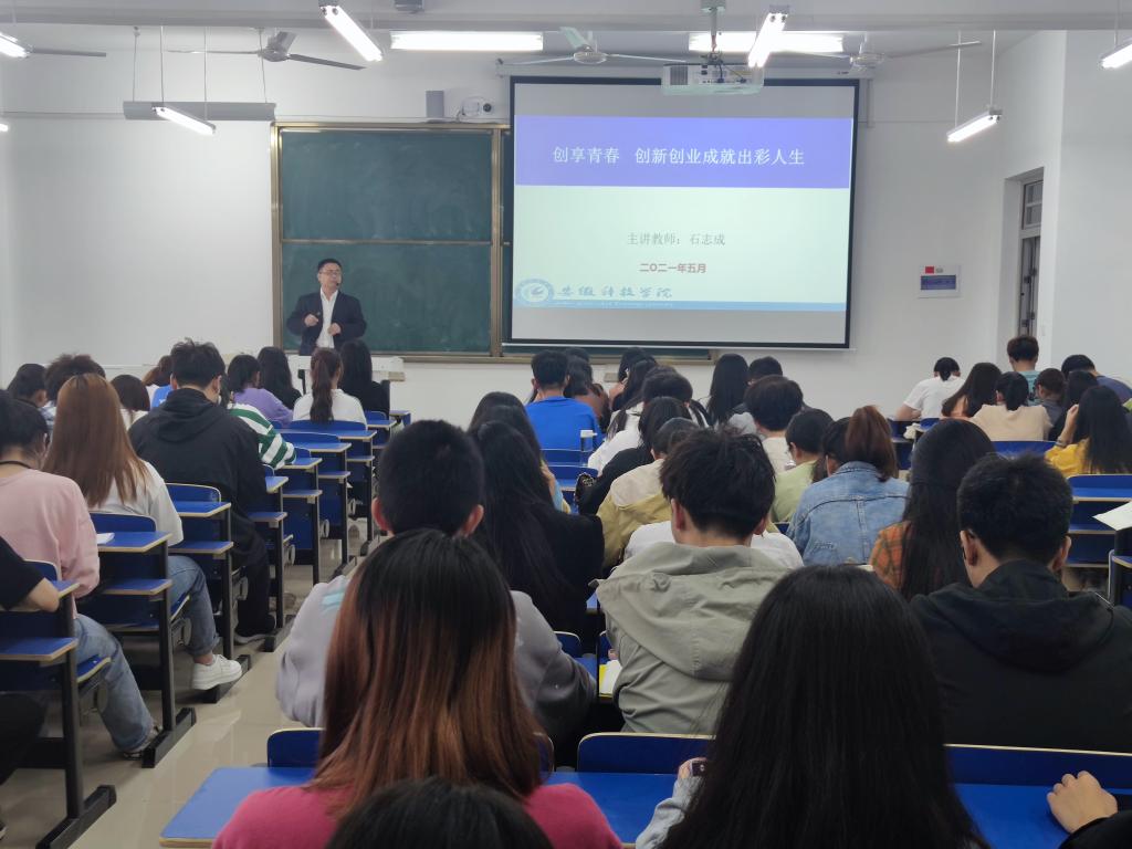 为开拓学生创新创业思维,5月12日,财经学院特邀蚌埠市创业指导师、党委学工部、学生处秘书石志成做创业讲座。我院约150名学生参加,讲座由财经学院辅导员王天云主持。