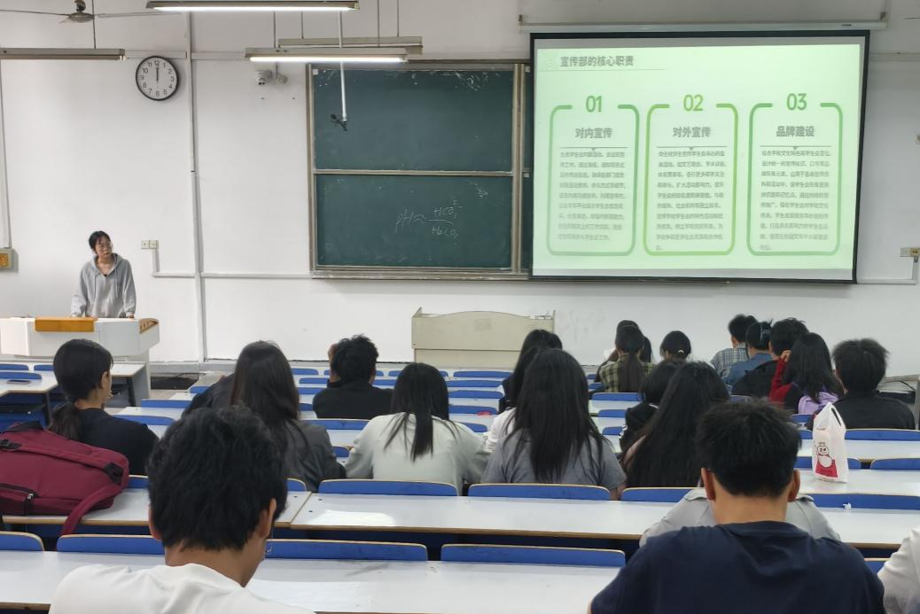 4月22日,动物科学学院学生会于求知楼A106室召开2024-2025学年第二学期学生会骨干培训会第三讲,本次培训会以“提升宣传技能,筑牢宣传基石”为主题,学院学生会全体成员参加会议,培训由宣传部部长吴阜肖主讲。