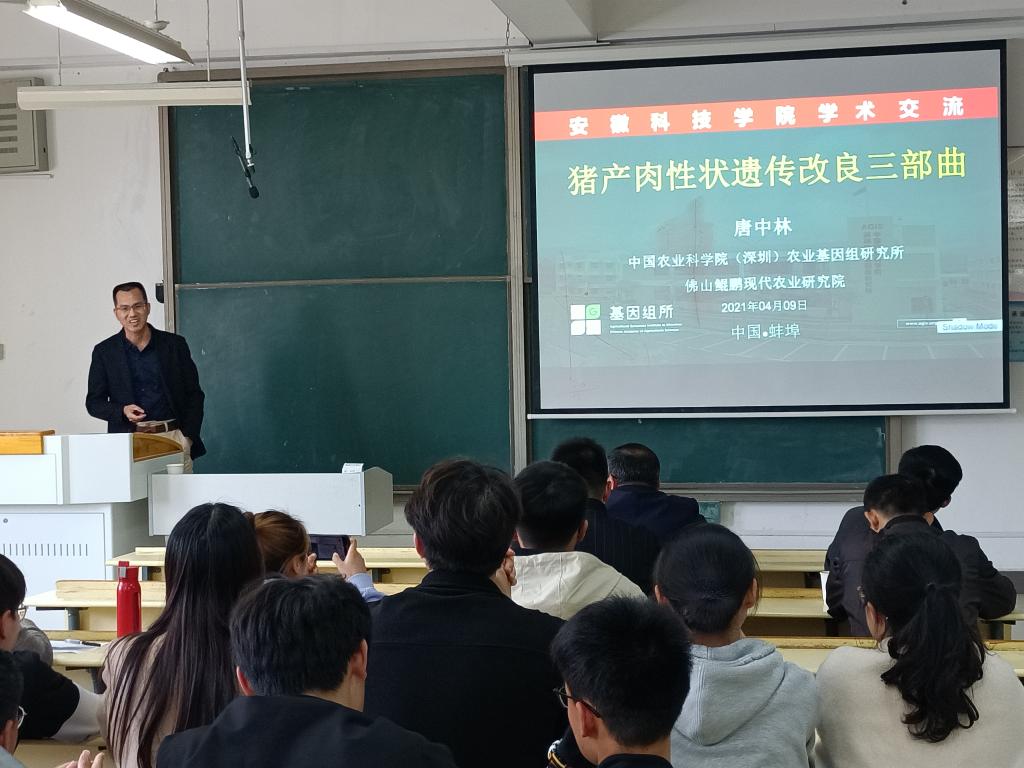 4月9日下午,《新半岛官方网站_半岛(中国)学报》期刊发展研讨会系列学术报告在凤阳校区新知楼A403举行。中国农业科学院“猪基因组设计育种创新团队”首席科学家、中国农业科学院(深圳)农业基因组研究所动物基因组研究中心主任、博士生导师唐中林应邀来校作学术报告。报告由动物科学学院副院长华金玲主持,学院部分教师、养殖领域硕士研究生及动物科学、动植物检验检疫等专业本科生聆听报告。