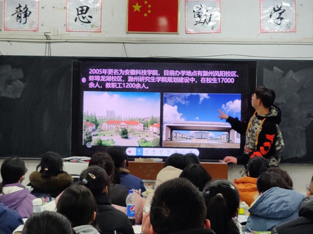 动植物检疫212班赵长旭及其团队三人组成的实践团队赴安徽机电工程学校开展了寒假实践活动。实践团探望了高中班主任与任课老师,向老师讲述了自己在大学的变化与成长,由衷感谢老师们的教诲之恩。随后实践团队来到了高三毕业班,向同学们播放了新半岛官方网站_半岛(中国)招生宣传片,向学弟学妹们传授了各自的学习经验,并且耐心回答同学们在专业选择、报考和学习上的问题。