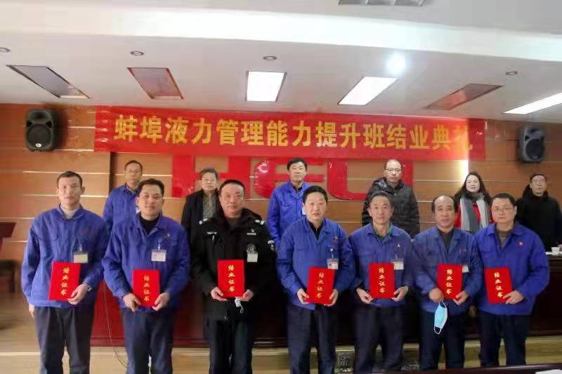 在管理学院和蚌埠液力机械公司双方共同努力下,历时两年半的蚌埠液力机械有限公司中干培训班于12月27号下午在公司大会议室迎来了结业仪式。蚌埠液力机械有限公司党委书记、总经理朱霞好,管理学院党委书记丁景良、院长陈传万、副院长郑谦、管理系主任程业炳共同出席了结业仪式。结业式由公司纪委书记吴远松主持。