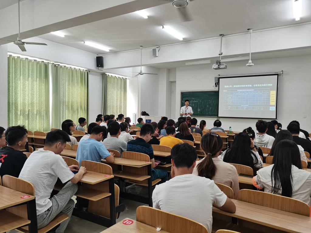 宣讲开始后,丰成首先通过三段视频直观而明了地向学生们介绍了其公司的运作流程和经营理念。接着,丰成分别从公司规模、人才理念、职业发展通道、薪酬福利及招聘岗位及需求说明等方面向同学们展现出一个立体化、鲜明化的德邦物流。并表示德邦将以“公平快速的内部晋升、年轻有梦想的团队、成长科技型企业”的企业文化欢迎优秀毕业生的加盟。