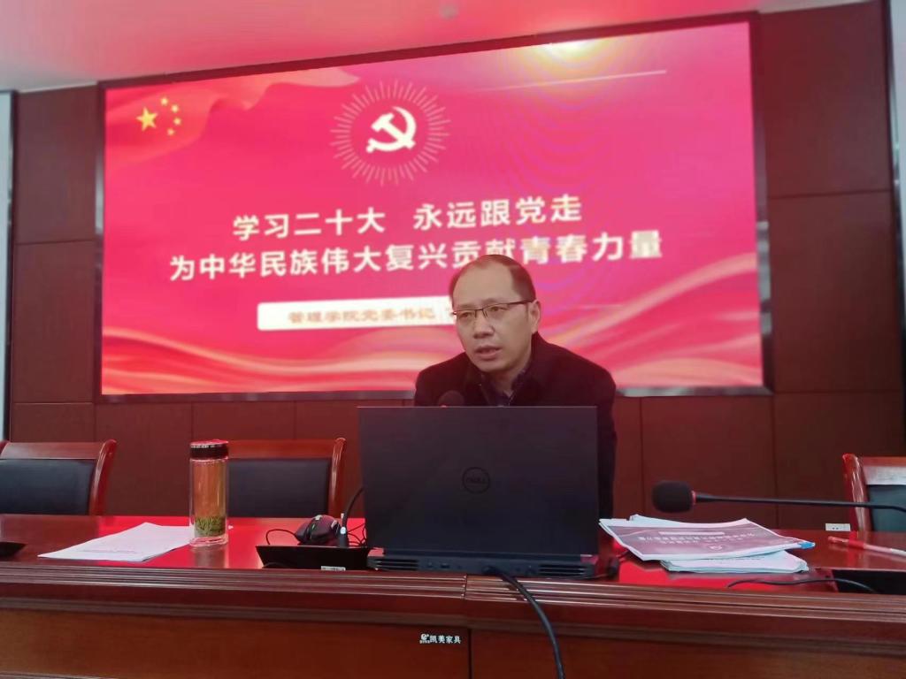 开班典礼结束后,学院党委书记丁景良围绕聚焦党的二十大、聚焦学校未来发展、聚焦管院事业发展三个主要方面内容,以“学习二十大,永远跟党走,为中华民族伟大复兴贡献青春力量”为主题开讲了第一课。