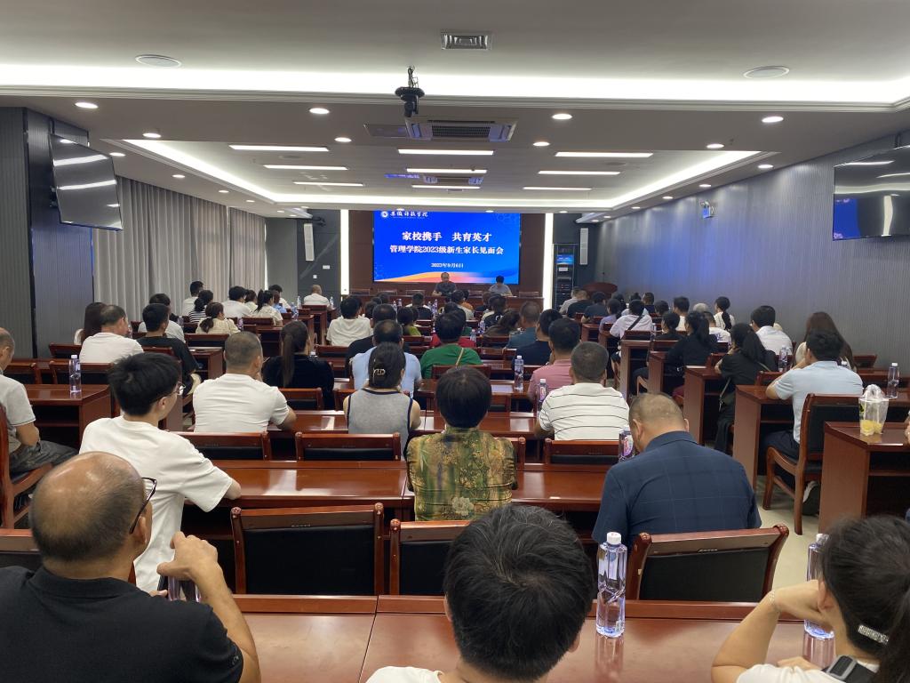 为增强家校沟通,汇聚育人合力,助力学生全面发展,9月6日下午,管理学院于西辅楼111会议室召开“家校携手 共育英才”2023级新生家长见面会。管理学院党委书记丁景良、副书记陶漫出席会议,全体新生辅导员及80余名新生家长参加了见面会。