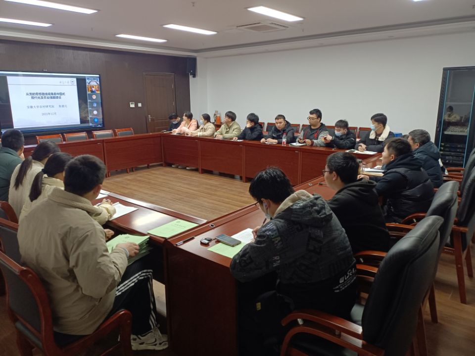 12月9日上午,教育部高校教学指导委员会委员、安徽大学中国三农问题研究中心主任、安徽大学农村改革与经济社会发展研究院执行院长、博士生导师张德元教授通过腾讯会议,应邀为管理学院教师和农业管理领域研究生作了题为《从党的思想路线视角看中国式现代化及农业强国建设》的学术报告。报告会由管理学院院长陈传万主持。农业管理领域研究生在西辅楼225会议室参加了报告会。