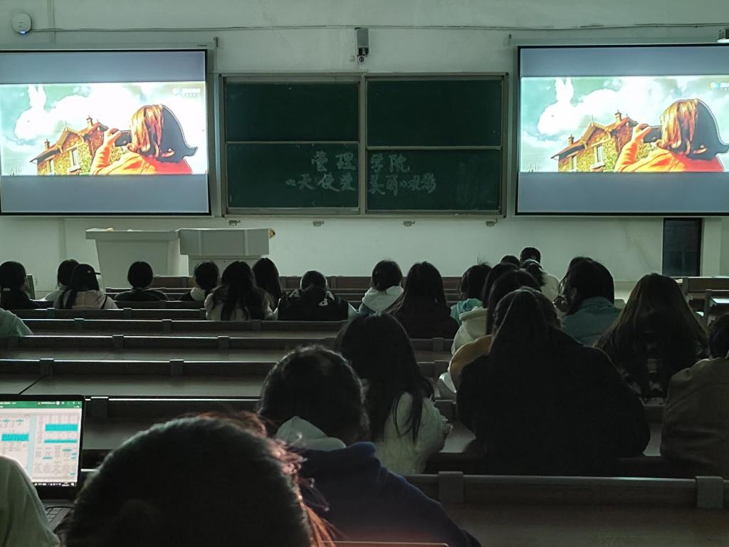 本次放映的电影名为《天使爱美丽》,是一部女性励志电影,由奥黛丽·塔图主演。同学们坐在座位上聚精会神地观看电影,跟随电影展开了一场特别而有意义的心灵之旅。电影以艾米丽的出生、成长、离家工作、帮助他人、找到真爱作为一条主线贯穿其中,围绕她童年家庭和成年工作环境中的亲人、邻居,集中展现了普通的人孤独、绝望,以及他们在艾米丽的帮助下,走出孤独的经过。影片从女主角爱美丽与受助者的心理角力层层递进,反映了孤独人生的社会性治愈过程。观影结束后,同学们纷纷表示受益颇深,深深地认识到一个人的价值在于用自己的光和热去照亮周围的世界,心中有爱,接纳自己的孤独,“碎片人”才能成为完整人。