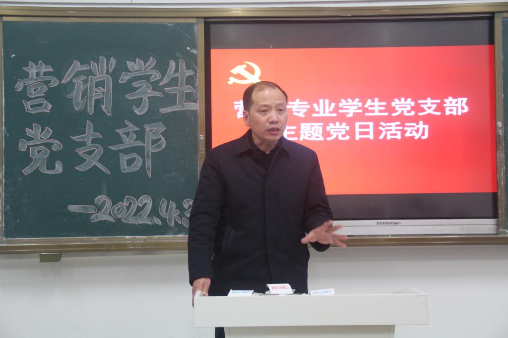 在全程参加活动和认真听完党员交流发言后,丁景良就本次主题党日活动开展成效作指导讲话,他指出,清明节是追忆故人,缅怀逝者的传统节日,今年清明节正值疫情防控非常时期,举办本次主题党日活动具有特殊意义,非常时期,非常方式,营销专业学生党支部利用“线上线下”结合的模式开展主题党日活动,打破时间和空间限制,让党员随时随地实现在线学习和交流,是加强党建工作的一次有益尝试。希望党员同志们要以这次主题党日活动为契机,传承伟大抗疫精神,始终牢记一名共产党员的责任担当,所做所为要无愧于共产党员这个光荣的称号,希望党支部加强班子建设,突出党支部领头雁作用,希望全体党员共同努力,以获批学校党建“双创”项目为新起点,进一步推进样板党支部建设,为其他学生党支部树立好榜样。