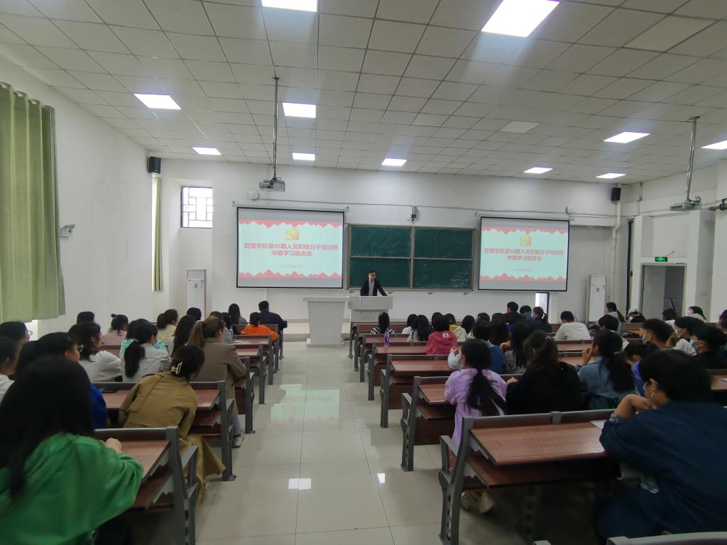 4月20日下午,管理学院在致知楼B111教室召开第56期入党积极分子培训班学习推进会。学院党政办公室主任李永鹏,辅导员黄斐、姚姝媛及全体第56期入党积极分子培训班学员参加了会议。会议由李永鹏主持。