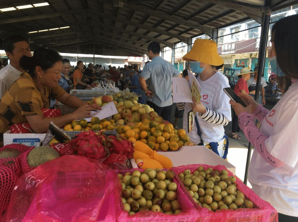 为更好地了解市民关于食品安全方面的知识、态度和想法,实践团在板桥镇长江农贸市场和凤宁农贸市场还开展了面向消费者和商家的访谈活动,同时发放了团队设计的食品安全宣传手册。通过调查发现,目前农贸市场整体发展状况良好,产品新鲜,宣传和监管力度到位,但仍需改进卫生状况,给商家和消费者一个舒适的购物环境。