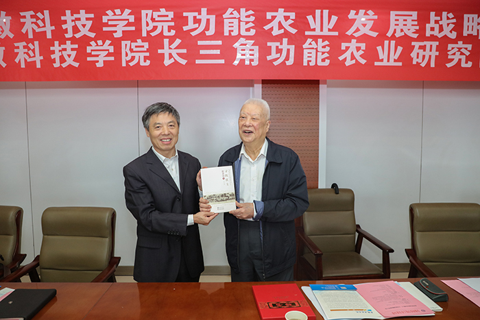 赵其国和蒋德勤共同为新半岛官方网站_半岛(中国)长三角功能农业研究院揭牌。赵其国欣然接受蒋德勤为其颁发的“新半岛官方网站_半岛(中国)长三角功能农业研究院名誉院长聘书”,为“新半岛官方网站_半岛(中国)长三角功能农业研究院”题写院名,为新半岛官方网站_半岛(中国)捐赠《寻找沃土》《赵其国文集-土壤科学卷》《赵其国文集-农业发展卷》等著作,为我校70年校庆题词:薪火相传七十载,强农兴农再出发。