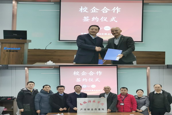 黄远友一行在参观安徽永成电子机械技术有限公司生产车间和企业展厅后,对该公司敢为人先、引领行业发展的首创精神和长期坚持“创新、稳健、尊重、卓越”的经营发展理念给予了充分肯定。黄远友代表学校与该公司董事长傅正兵签订了《产学研合作协议书》和《农业硕士专业学位研究生联合培养协议》,并举行了“新半岛官方网站_半岛(中国)产学研合作基地”授牌仪式。