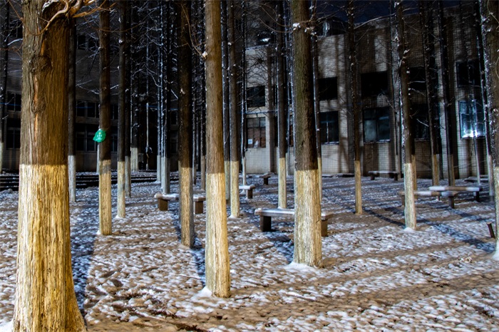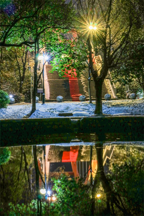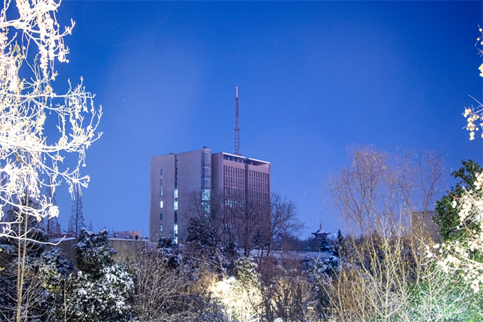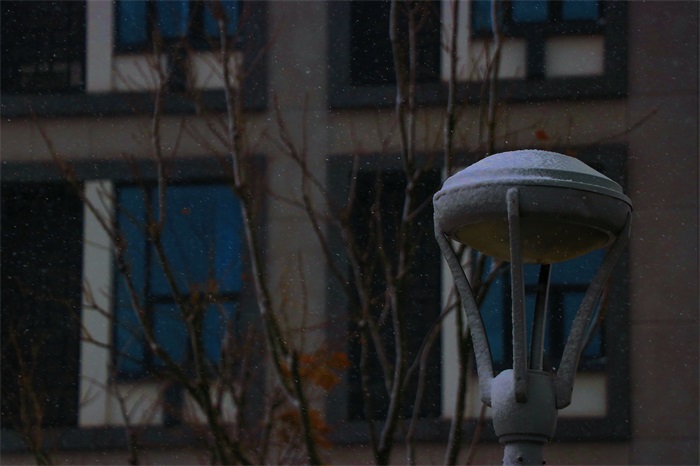 “应是天仙狂醉,乱把白云揉碎”,天上揉碎的云飘下来变成了冬天的雪花。纷纷扬扬的雪花,给安科带上了一层朦胧的滤镜,展现了她别致的韵味和风采。不期而至的雪花散落在校园每一处,每一角,制造着专属安科的冬日独家记忆。