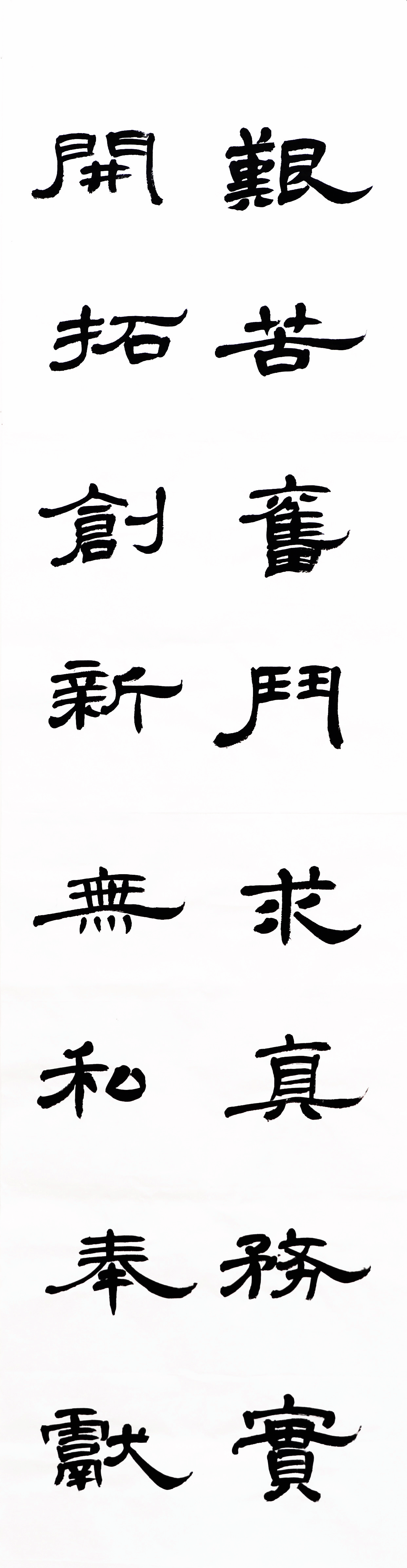 为充分发挥校训、安科精神等精神文化在学校事业发展和“立德树人”过程中的重要作用,进一步激发全校师生的爱国爱校情怀,汇聚广大师生共筑中国梦的磅礴力量,党委宣传部在全校范围内开展迎新年“弘扬社会主义核心价值观及大学精神”主题书法大赛。活动自开展以来,得到了广大师生的积极响应,共收集到69件作品,现遴选出部分作品刊登以飨读者。