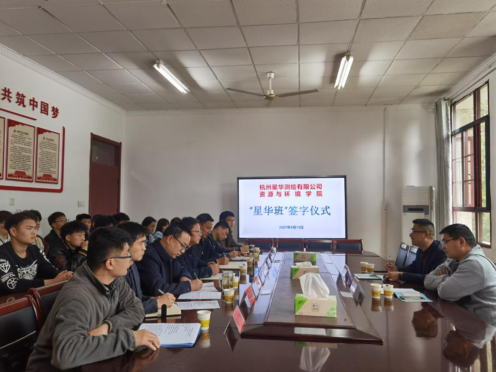 4月13日下午,我校资源与环境学院与杭州星华测绘有限公司举行产学研合作签约暨“星华班”授牌仪式。