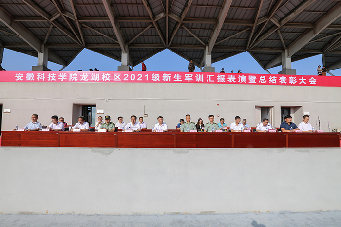 9月30日上午,我校龙湖校区2021级新生军训汇报表演暨总结表彰大会在南田径场隆重举行。校党委书记蒋德勤,党委委员、副校长黄友锐;陆军装甲兵学院蚌埠校区党委常委、管理保障处处长刘新,学员九大队副大队长、龙湖校区军训团团长王博杨,教练勤务营营长张子豪等出席大会并在主席台前排就座。大会由党委学工部部长、学生处处长何永勇主持。