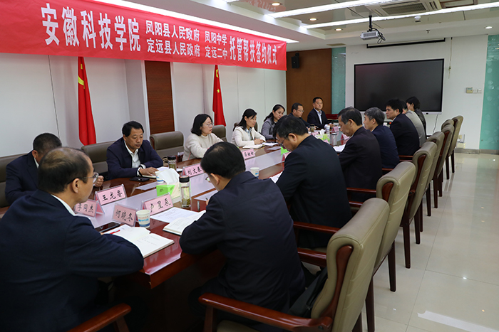 10月28日上午,新半岛官方网站_半岛(中国)与凤阳县人民政府、定远县人民政府、凤阳中学、定远县第二中学托管帮扶签约仪式在凤阳校区图书馆十楼会议室举行。校党委书记蒋德勤,党委副书记、院长李震,党委委员、纪委书记、监察专员王强,党委委员、副院长李升和,凤阳县人民政府副县长张艳,定远县人民政府副县长许倩,滁州市、凤阳县、定远县教育体育局、凤阳中学、定远二中相关领导同志参加仪式。