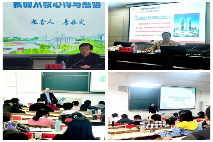 在校本培训环节,安徽省“新时代教书育人楷模”詹秋文教授围绕“如何做一名合格的人民教师”为题,结合自己三十余年的从教经历,从“教书育人”“光大自我”“舍得牺牲”“知己知彼”“爱非溺爱”“研教相长”“服务社会”“锻炼团队”“懂得感恩”等九个方面生动诠释了如何做一名合格的人民教师。财务处处长王伟以财务报销为主线,从财经纪律与廉政建设、财务报销流程及财务业务介绍等三个方面展开介绍,他强调广大教师要严肃财经纪律、遵守财务制度、加强自身建设、提高廉洁自律意识。全国师范课教学展示二等奖、安徽省高校党史书课及教学展示一等奖获得者马克思主义学院赵仁青老师以“物质与意识的辩证关系”为课题,为新进教师们演绎教学示范课,赵老师希望新进教师平时在教学和教研上要多下功夫,夯实教学基本功,争取在较短时间内站稳讲台、站好讲台,成长为有理想信念、有道德情操、有扎实学识、有仁爱之心的“四有”好老师、做“经师”与“人师”相统一的“大先生”。科研处科研科科长钱晶晶以科研项目申报为主题作了专题讲座,为新进教师如何开展科研工作厘清了思路。人事处人事科科长裴毅以《破“五唯”环境下的职称评审及相关政策解读》为题,帮助新进教师深入了解职称评审新政策,为新进教师未来职业发展及后续职称评审申报工作提供了指导。